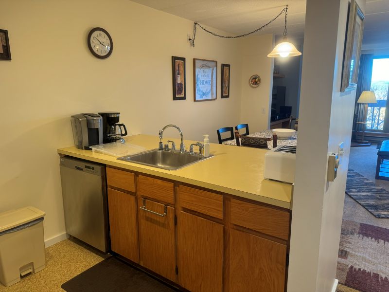 Well maintained and nicely decorated 2-bedroom, 2-bath Pinnacle Condominium unit. Inviting, comfortable living room with gas fireplace, large flat screen TV, long sleep sofa, and a slider out to a balcony with mountain views. Master bedroom with king size bed, flat screen TV, and full bath with tub/shower. Second bedroom with twin beds, flat screen TV, and full bath with tub/shower and stacked washer/dryer. On-site newly renovated “Club Pinnacle” spa facility with common space in Building E, and a family game room facility with a small exercise area in Building B.
